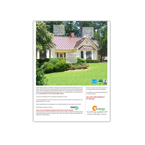 Created full page ad for Energy Roofing System company. Took key elements from text and pointed to various areas on the roof to drag the reader into the ad.Continue Reading