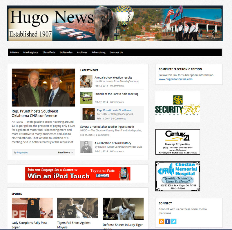 What a great new website for Hugo News, in Hugo Oklahoma. This website contains so many great features, including a RSS feed for newly posted news. It is a content management site, that the client can go in and add their new posts on the latest news in Hugo, driven by WordPress. Extra features for analytics of site traffic and SEO. And, this is a responsive website that can be viewed on mobile devices. Below are before and after images of their website. Check out Hugo News live website here.
