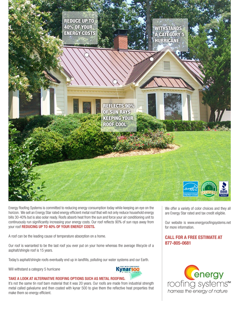 Roofing System adInAdvertisementsCreated full page ad for Energy Roofing System company. Took key elements from text and pointed to various areas on the roof to drag the reader into the ad.